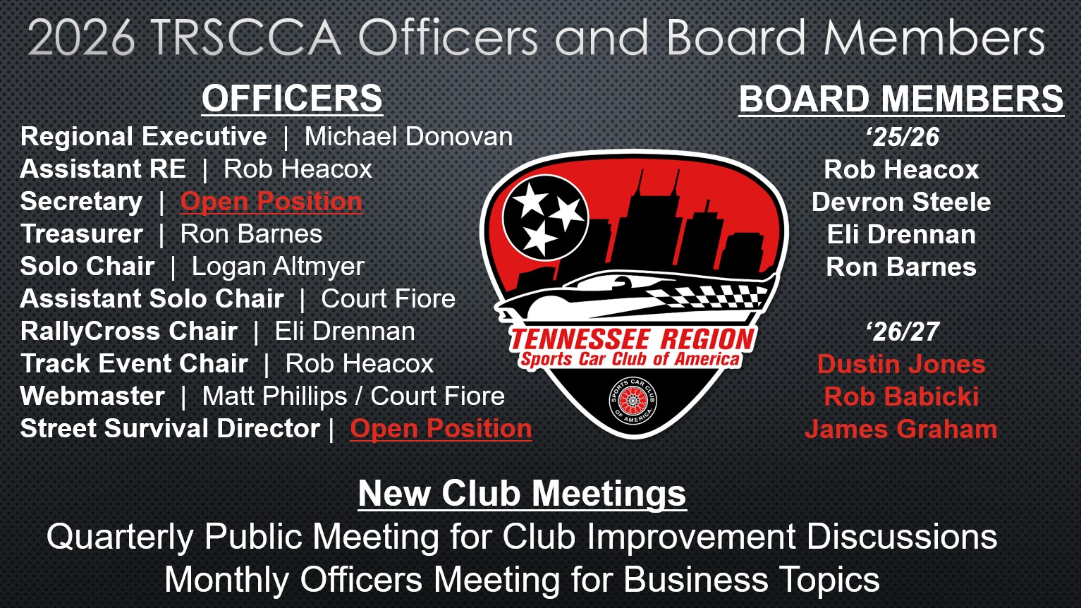 Tennessee Region Sports Car Club of America (TRSCCA) is a non-profit chapter of the